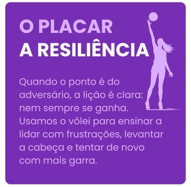 Nessa fase, o vôlei é a ferramenta mágica que transforma a timidez em confiança e energia em propósito. Nosso objetivo vai muito além de ensinar a manchete perfeita; queremos desenvolver as "habilidades invisíveis".